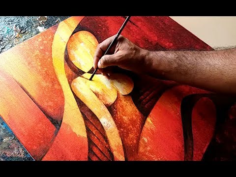 Abstract Painting / Abstract Figurative Painting in Acrylics / Demonstration - Abstract Painting India - Demonstration of abstract figurative painting in acrylics. Background is done in fluid acrylics using thin layers and spraying water. Drawing was done before ...